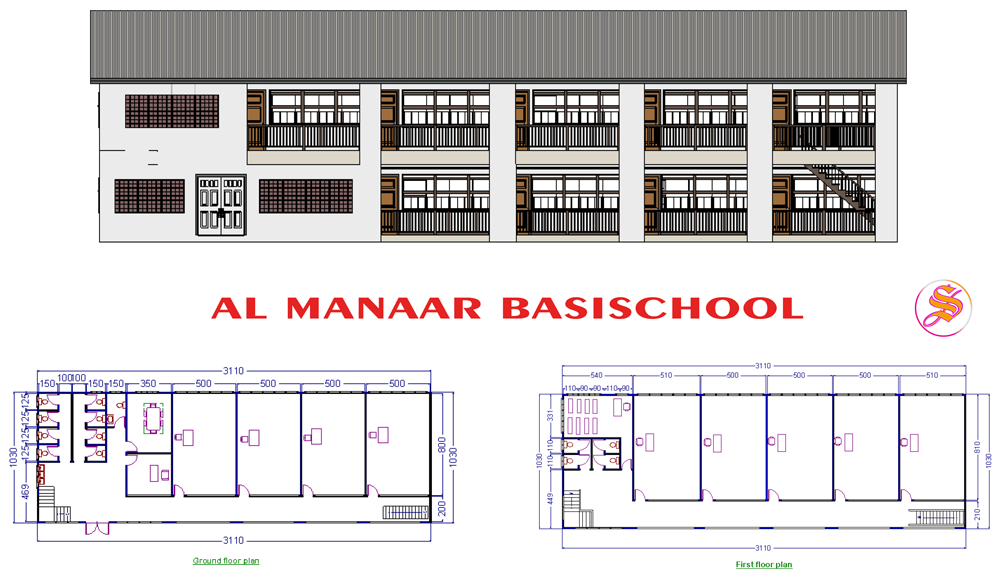 Het schoolgebouw zal 9 lokalen bevatten, ieder van 7 x 7m. De bezetting per lokaal zal 15 tot 20 leerlingen bedragen. Verder zal er een ruimte beschikbaar zijn voor de directeur, een ruimte voor de leerkrachten, een jongenstoilet, een meisjestoilet en een toilet voor de leerkrachten. Ook zal er een ruimte beschikbaar zijn voor een magazijn en ruimte voor een mediatheek. Een gedeelte van het erf zal afgebakend worden en dienen als speeltuin met diverse speelattributen zoals een glijbaan, een schommel, een wipwap, een carrousel etc. Het resterend deel van het erf zal dienen als oefenveld voor lichamelijke opvoeding en verzamelplaats tijdens de pauzes. Het gehele perceel zal voorzien zijn van een schutting en een afsluitbare poort. Op het perceel zal er naast het schoolerf een faciliteit worden opgezet, die eventueel kan dienen als keuken inclusief eetzaal.